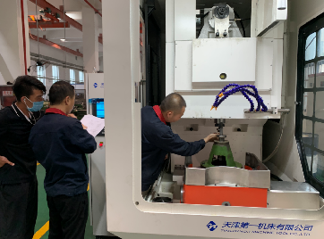 我司領(lǐng)導(dǎo)與設(shè)備廠家技術(shù)人員現(xiàn)場(chǎng)溝通、探討設(shè)備加工產(chǎn)品性能問(wèn)題