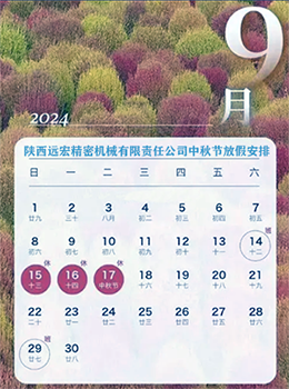 陜西遠宏精密機械有限責任公司中秋節(jié)放假安排