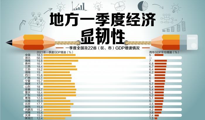而從已發(fā)布經(jīng)濟(jì)數(shù)據(jù)的22個(gè)地區(qū)情況看,2021年一季度的平均增速為18.43%,若剔除湖北,則21個(gè)地區(qū)的一季度平均經(jīng)濟(jì)增速為16.53%。